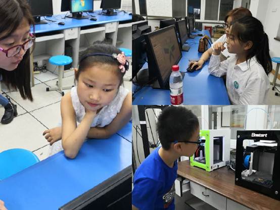 活动伊始,詹雯老师向小朋友们介绍了体验活动流程及注意事项,并祝愿小朋友们儿童节快乐。接着,孩子们便开始了创新体验之旅,李少宾老师用通俗易懂的语言介绍了3D打印的原理并给孩子们讲解了如何用软件设计3D打印模型文件,她还孩子们展示了实验室中3D打印的作品,当孩子们看到了各种用3D打印机设计打印出来的卡通形象,都跃跃欲试,在李老师的指导下,孩子们首先在机房中设计了自己喜欢的3D模型文件,然后来到3D打印实训室打印自己的作品,他们看着自己设计的作品被打印机一点点打印出来后,都觉得很神奇,拿着自己制作的3D打印模型,开心的笑容绽放在了他们的脸上。