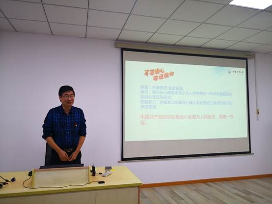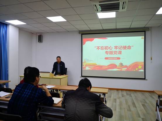 为推进“不忘初心、牢记使命”主题教育扎实开展,引导广大党员干部提高思想认识,坚定理想信念,发挥先锋模范作用。按照学校工作部署,结合学习和调研成果,工训中心党总支于10月31日晚,在工训中心303举行“不忘初心、牢记使命”主题教育专题党课。校纪检监察室张向军老师受校主题教育领导小组办公室委派到会督导到会监督,党总支全体党员参加会议,党总支书记巢岺主持会议。