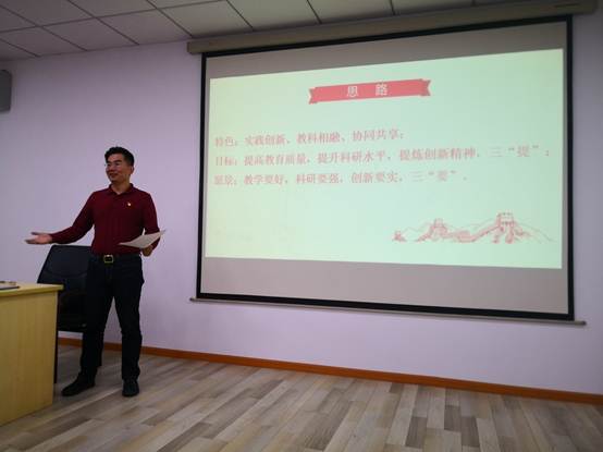 张松慧就加强党员党性修养、提高实训教学质量、提升学科竞赛实效三个方面与守初心、担使命中心思想相结合,阐述了不断提升党员党性修养水平要坚定立场、严守规矩、躬身实践。并深入剖析了目前我校工训中心在教学和学科竞赛方面的的不足和差距,及改进措施。