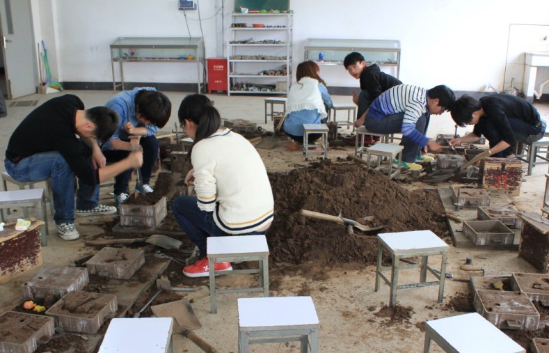 本实验室主要承担机械制造技术实训中的金属铸造成形实训任务。通过实训,可以使学生了解铸造生产的工艺过程及特点,了解砂型铸造的基本造型方法,掌握基本造型工艺的操作过程和简单型芯的制作,了解特种铸造方法的工艺特点及适用场合。