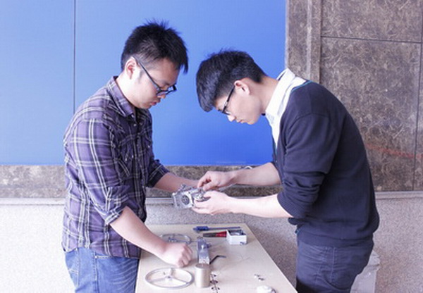 为了更好地备战全国大学生工程训练综合能力竞赛,巩固和锻炼参赛选手临场比赛经验,4月22日下午,工程训练中心金工党小组举办了工程训练综合能力竞赛“模拟”赛,参赛的是来自浙江省大学生工程训练竞赛脱颖而出的我校本部和现代科技学院2支参赛队伍。本届竞赛主题为“无碳小车越障竞赛”,设计一种小车,以给定重力势能驱动其行走及转向。为了做好本次“模拟”比赛,工训中心按照全国比赛要求专门制定了比赛程序,并由专人负责比赛程秩序,专人负责比赛裁判,专人负责快速成型出题。参赛选手13:20分报到,工作人员一一检查学生证后,13:30分正式开始比赛,比赛分为两块:每组2人参加小车拆装调试行走,选手先将小车机构全部拆开(包括所有零件、机构),经裁判检查后重新安装调试,时间控制在1个小时,然后按抽签顺序两个参赛组先后在半张标准乒乓球台上,按“8”字型轨迹绕相距500mm两个障碍物运行,以小车完成8字绕行圈数的多少来评定成绩;同步进行的还有快速成型加工,每组1人参加产品造型设计后用3D打印,以完成造型和打印质量来评定,时间控制在1小时以内。经过大家努力,参赛选手们最终都赛出了令人满意的成绩,“模拟”比赛也吸引了众多的学生前来观战,热情地为行走在乒乓球桌上的“无碳小车”加油喝彩。