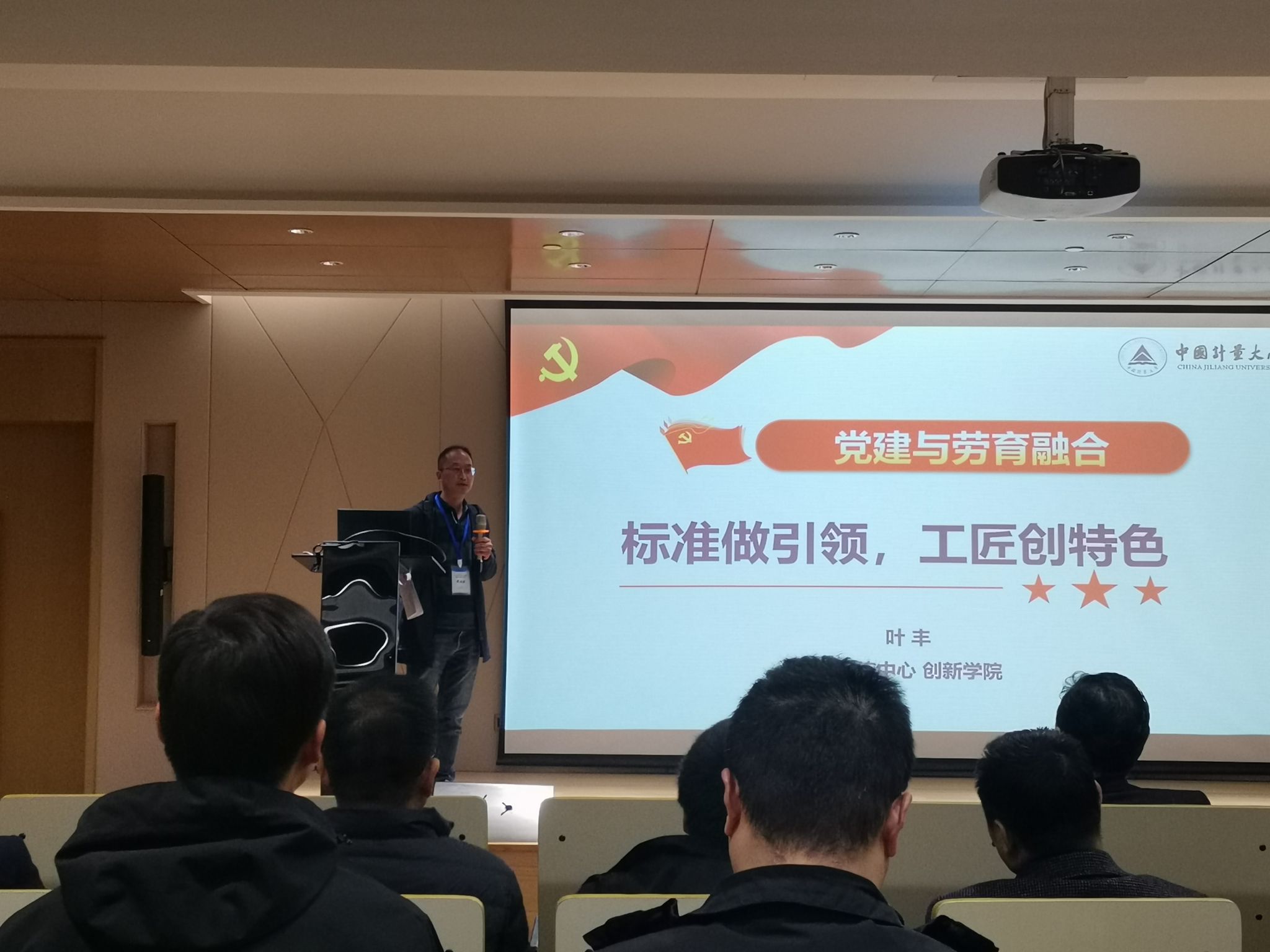 金工支部书记叶丰做了题为“标准做引领、工匠创特色”的专题报告。报告从“党建标准化,工匠创特色、工作成效”等方面向与会成员介绍了工程训练中心金工支部在党建引领、“工匠精神”深度融合课程思政、课程建设、教学改革、学科竞赛上取得的成效,分享了工程训练教学中的育人成果,支部党员教育和党员骨干在工程训练教学中发挥的积极作用。