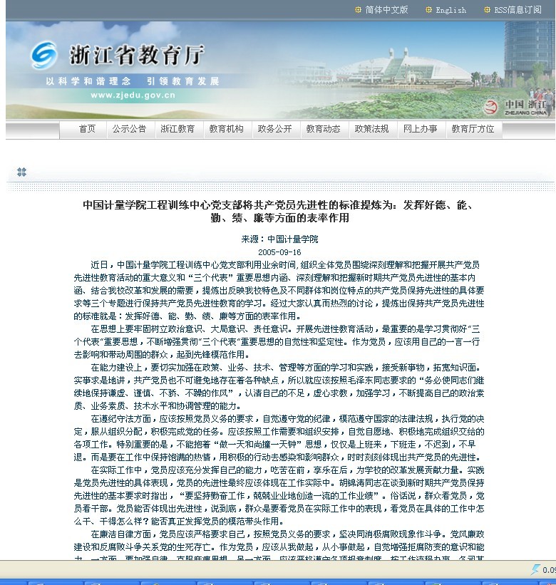 中国计量学院工程训练中心将共产党员先进性的标准提炼为:发挥好德、勤、能、绩、廉等方面的表率作用-浙江教育网
