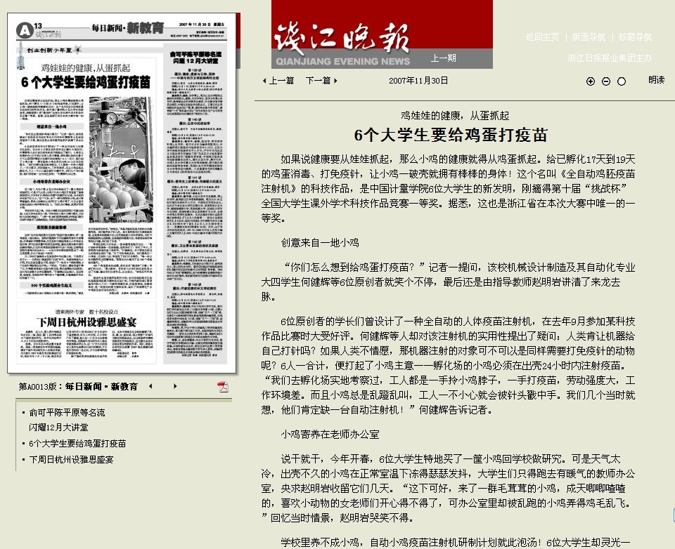 6个大学生要给鸡蛋打疫苗-钱江晚报