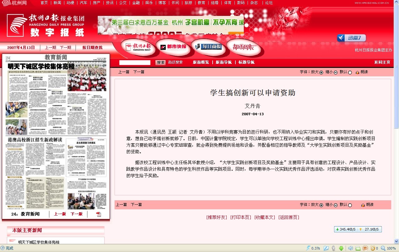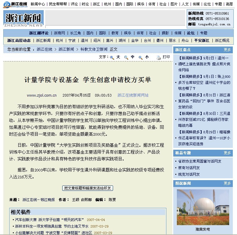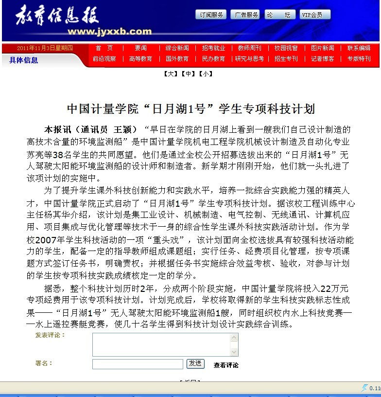 中国计量学院“日月湖1号”学生专项科技计划-教育信息报