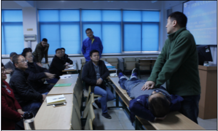 会议分为两个阶段,第一阶段是安全事故后的处理:中心邀请了学校卫生所张旭良医师作《常见外伤的应急处理》专题讲座,张医生结合我校工程训练特点,重点讲解了机械伤、烧(烫)伤、触电伤、晕厥等10余种受伤(病理)状态下的应急处理知识,同时还结合心肺复苏处理过程进行了现场急救演示。
