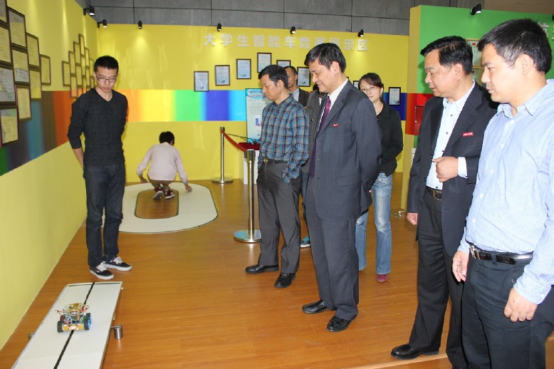 剪彩仪式结束后,校领导和来宾们一起饶有兴致地观看了创新实践成果和获奖作品现场演示,并与同学就作品的创新点及实用性等方面进行了交谈,希望同学们将创新精神发扬和传承下去,在创新实践活动中取得更好的成绩。