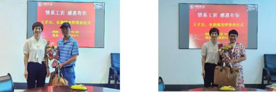 情系工训,感恩有你。9月7日上午工程训练中心在工训412会议室为王才元、朱朝霞老师举行了热烈隆重的荣休仪式。中心全体领导班子、办公室人员、支部书记、部门负责人、教师代表等出席了仪式,仪式由工训中心副主任、分工会主席陈春主持。