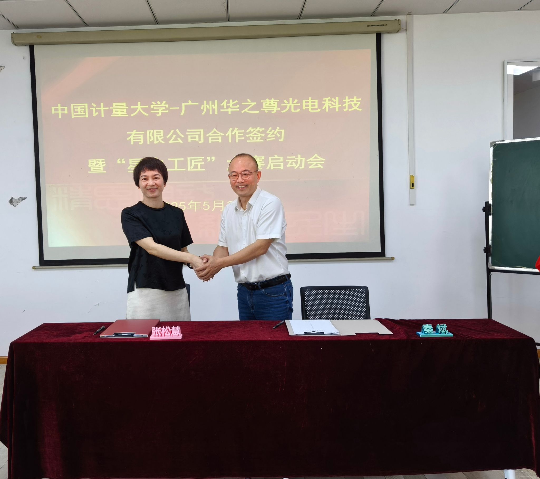 广州华之尊光电科技有限公司总经理秦斌在致辞中表达了对双方校企合作框架协议签署暨“星火工匠”大赛正式启动的诚挚祝愿,他指出将以共建产教融合创新实验室为契机,加大产学研智创的深度、广度和高度,共同打造以激光加工为主线的具有计量特色的实践教学新范式。他同时表示公司将全程为“星火工匠”大赛提供技术保障与支持,并预祝大赛圆满成功。