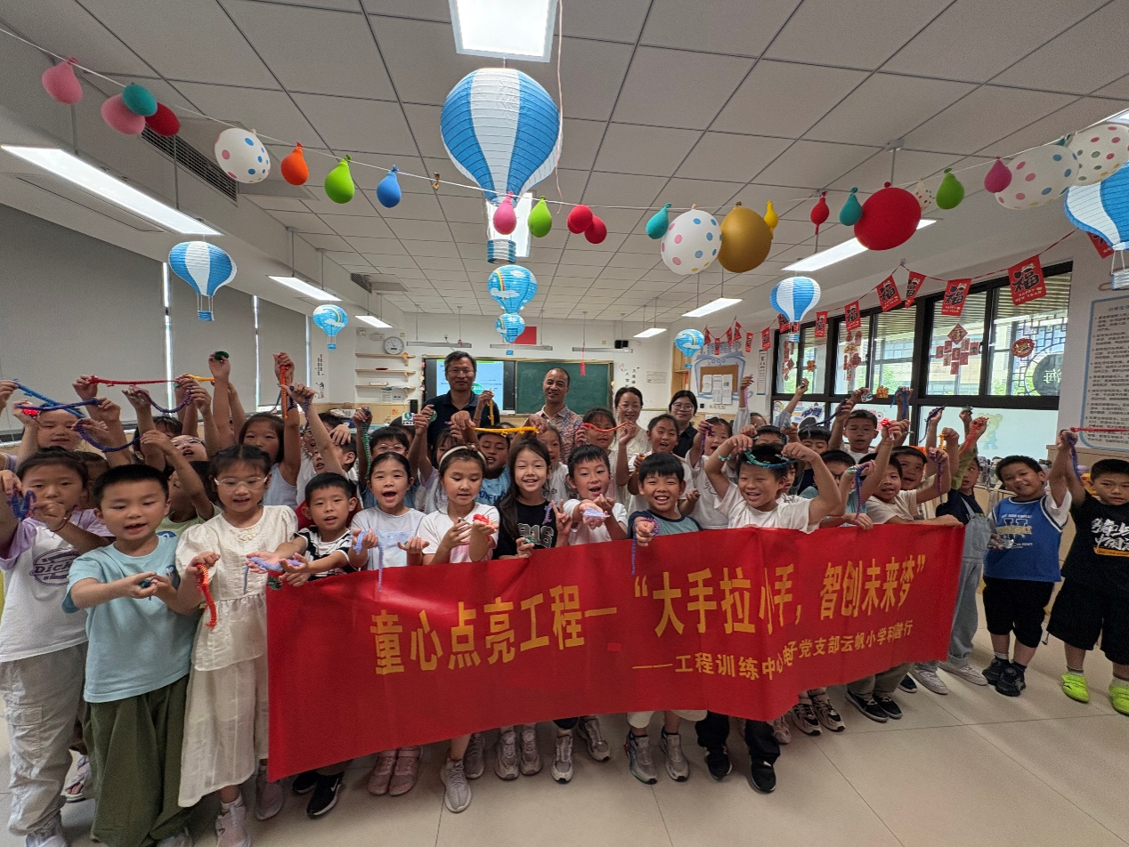 中国计量大学工程训练中心党总支“童心点亮工程”党建品牌活动自2011年起,每年为教职工子女提供科创启蒙教育。2025年活动拓展至附属小学,以云帆小学为试点,将科技实践课堂带入基础教育,助力“双减”政策下的素质教育提升。