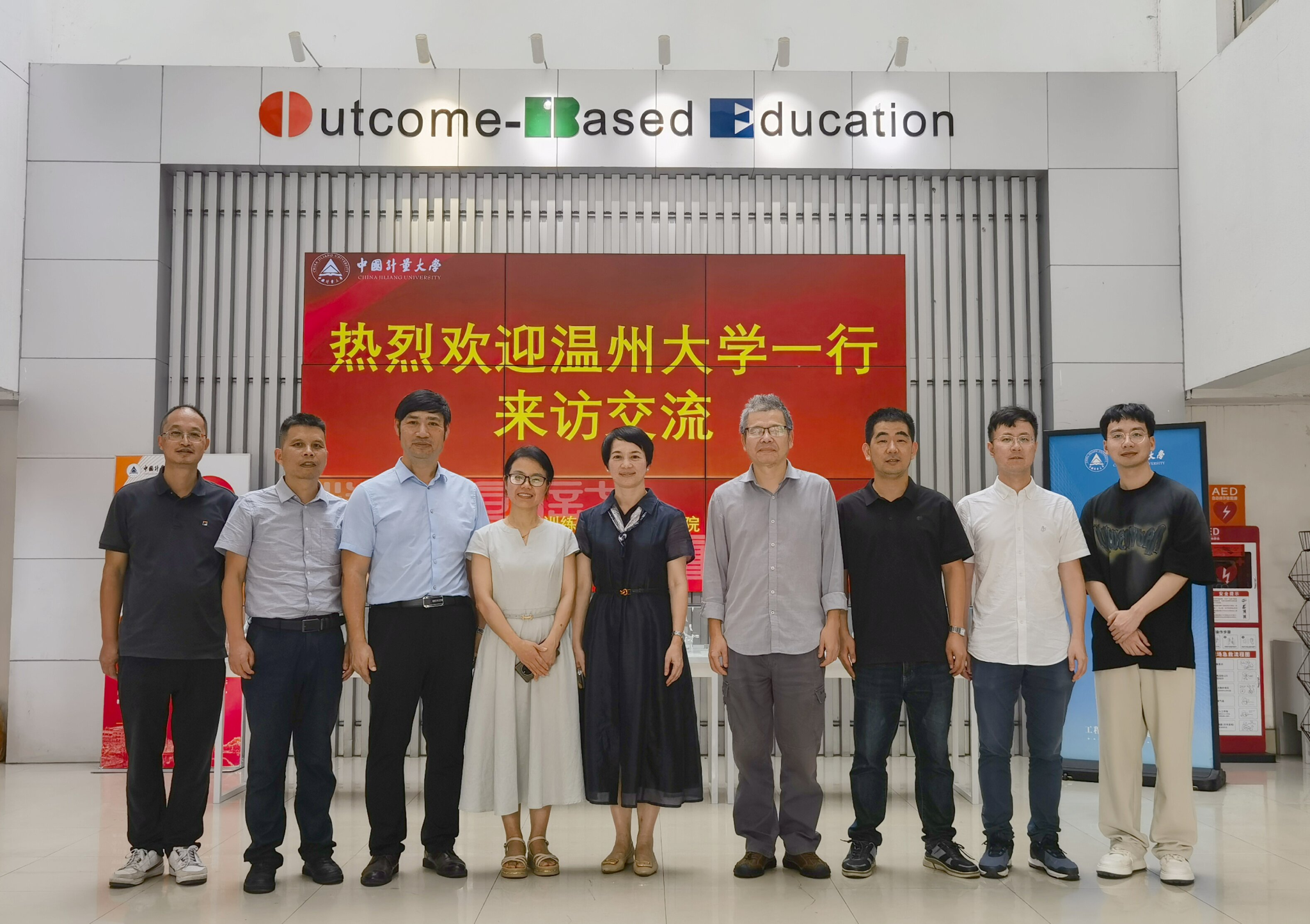 2025年9月23日下午,温州大学教务处处长何林李一行5人到访中国计量大学工程训练中心调研交流。工程训练中心主任张松慧、党总支书记汪志勤热情接待了来访客人一行,出席了交流座谈会并陪同参观,参与座谈会的还有各部门负责人、学科竞赛负责人。